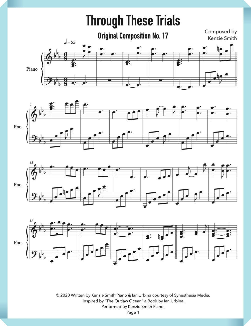 Sheet Music for "Through These Trials" as heard in "Seaside (Inspired by 'The Outlaw Ocean' a book by Ian Urbina)" by Kenzie Smith Piano.