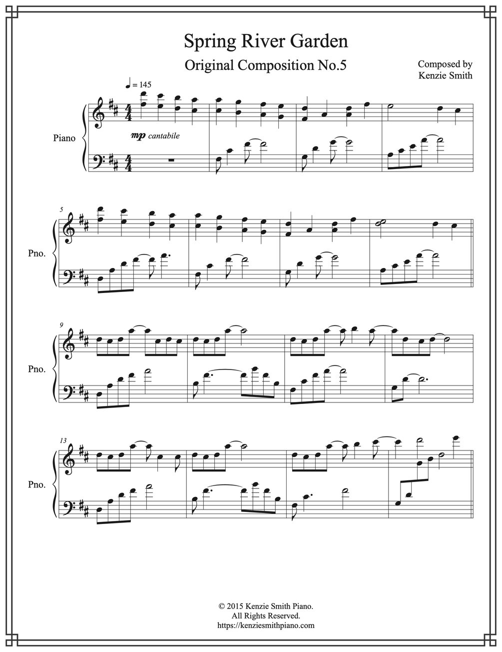 Sheet Music for "Spring River Garden" by Kenzie Smith Piano.