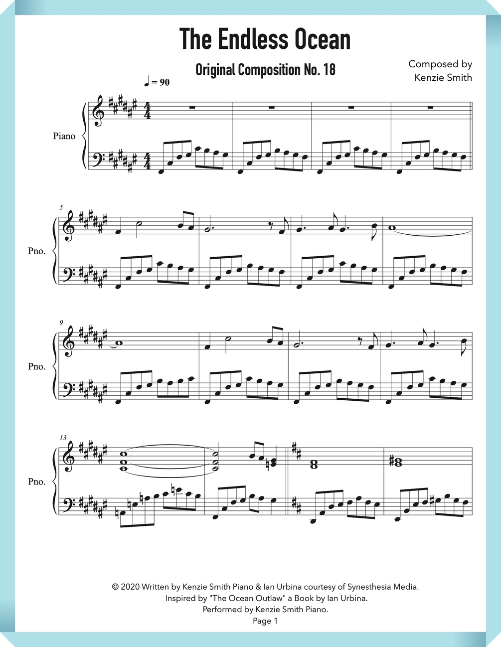 Sheet Music for "The Endless Ocean" as heard in "Seaside (Inspired by 'The Outlaw Ocean' a book by Ian Urbina)" by Kenzie Smith Piano.
